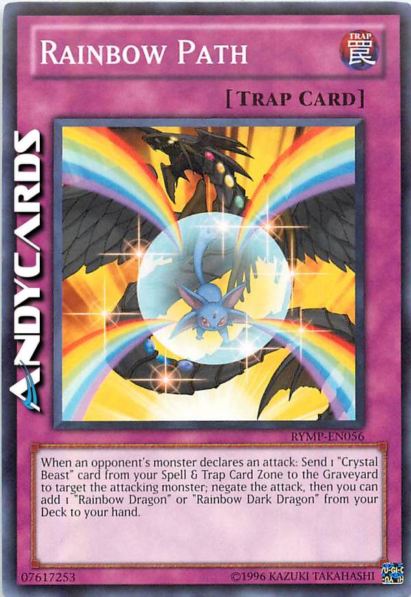 When an opponent's monster declares an attack: Send 1 "Crystal Beast" card from your Spell & Trap Card Zone to the Graveyard to target the attacking monster; negate the attack, then you can add 1 "Rainbow Dragon" or "Rainbow Dark Dragon" from your Deck to your hand.