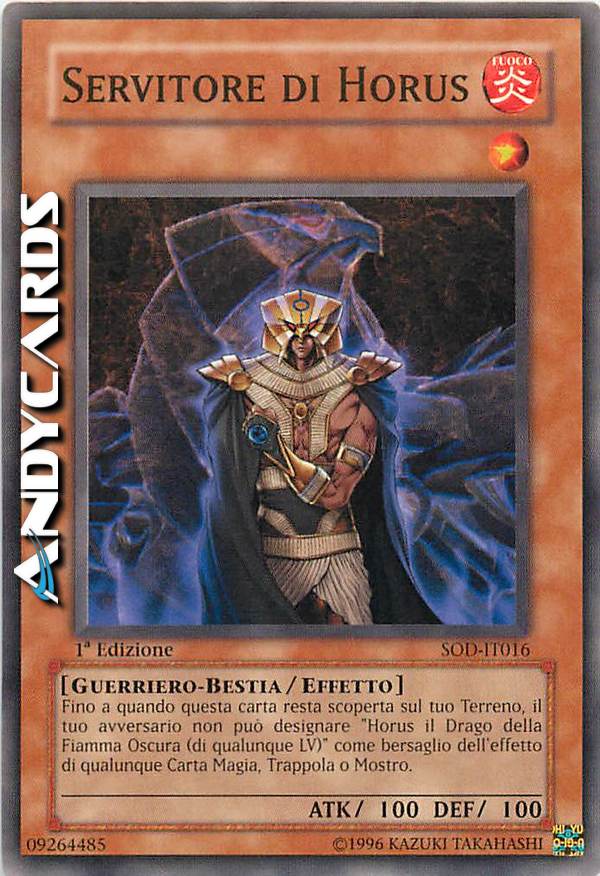Fino a quando questa carta resta scoperta sul tuo Terreno, il tuo avversario non può designare "Horus il Drago della Fiamma Oscura (di qualunque LV)" come bersaglio dell'effetto di qualunque Carta Magia, Trappola o Mostro.