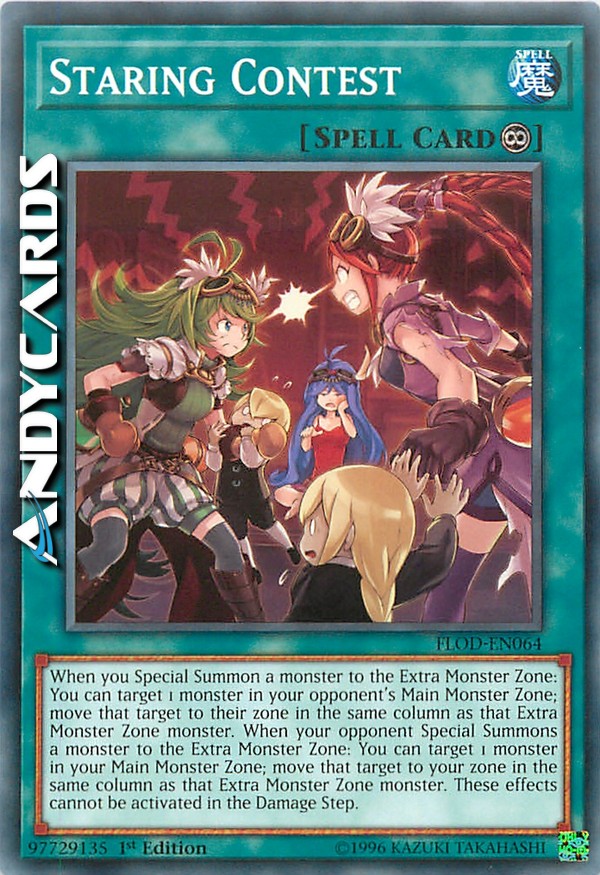 Quando Evochi Specialmente un mostro nella Zona Mostri Extra: puoi scegliere come bersaglio 1 mostro in una Zona Mostri Main del tuo avversario; sposta quel bersaglio nella sua zona nella stessa colonna di quel mostro nella Zona Mostri Extra. Quando il tuo avversario Evoca Specialmente un mostro nella Zona Mostri Extra: puoi scegliere come bersaglio 1 mostro in una tua Zona Mostri Main; sposta quel bersaglio nella tua zona nella stessa colonna di quel mostro nella Zona Mostri Extra. Questi effetti non possono essere attivati nel Damage Step.