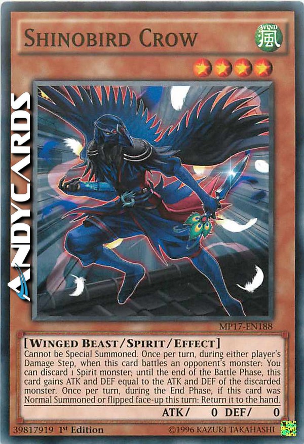 Non può essere Evocato Specialmente. Una volta per turno, durante il Damage Step di qualsiasi giocatore, quando questa carta combatte con un mostro dell'avversario: puoi scartare 1 mostro Spirito; fino alla fine della Battle Phase, questa carta guadagna ATK e DEF pari all'ATK e DEF del mostro scartato. Una volta per turno, durante la End Phase, se questa carta è stata Evocata Normalmente o scoperta in questo turno: falla ritornare nella mano.
