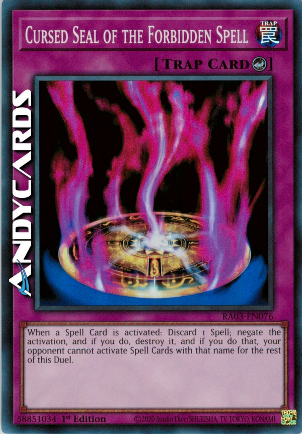 When a Spell Card is activated: Discard 1 Spell; negate the activation, and if you do, destroy it, and if you do that, your opponent cannot activate Spell Cards with that name for the rest of this Duel.