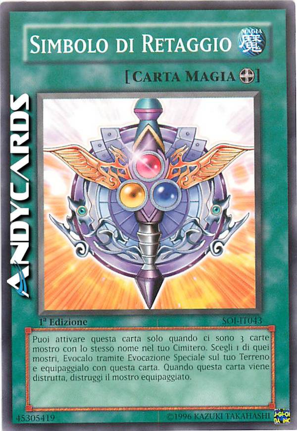 Puoi attivare questa carta solo quando ci sono 3 carte mostro con lo stesso nome nel tuo Cimitero. Scegli 1 di quei mostri, Evocalo tramite Evocazione Speciale sul tuo Terreno e equipaggialo con questa carta. Quando questa carta viene distrutta, distruggi il mostro equipaggiato.