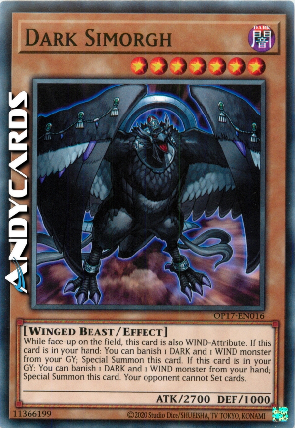 Fino a quando questa carta è scoperta sul Terreno il suo Attributo è considerato anche come VENTO. Puoi rimuovere dal gioco 1 mostro OSCURITA' e 1 mostro VENTO dal tuo Cimitero per Evocare Specialmente questa carta dalla tua mano. Puoi rimuovere dal gioco 1 mostro OSCURITA' e 1 mostro VENTO dalla tua mano per Evocare Specialmente questa carta dal tuo Cimitero. Il tuo avversario non può Posizionare nessuna carta sul Terreno.