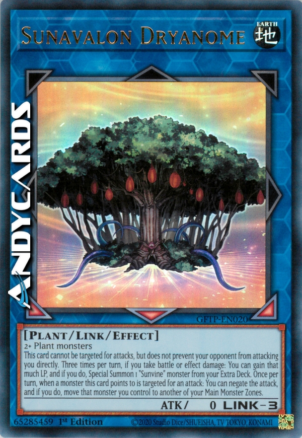 This card cannot be targeted for attacks, but does not prevent your opponent from attacking you directly. Three times per turn, if you take battle or effect damage: You can gain that much LP, and if you do, Special Summon 1 "Sunvine" monster from your Extra Deck. Once per turn, when a monster this card points to is targeted for an attack: You can negate the attack, and if you do, move that monster you control to another of your Main Monster Zones.