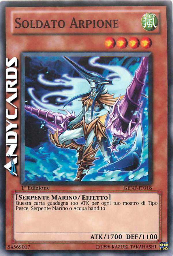 Questa carta guadagna 100 ATK per ogni tuo mostro di Tipo Pesce, Serpente Marino o Acqua bandito.
