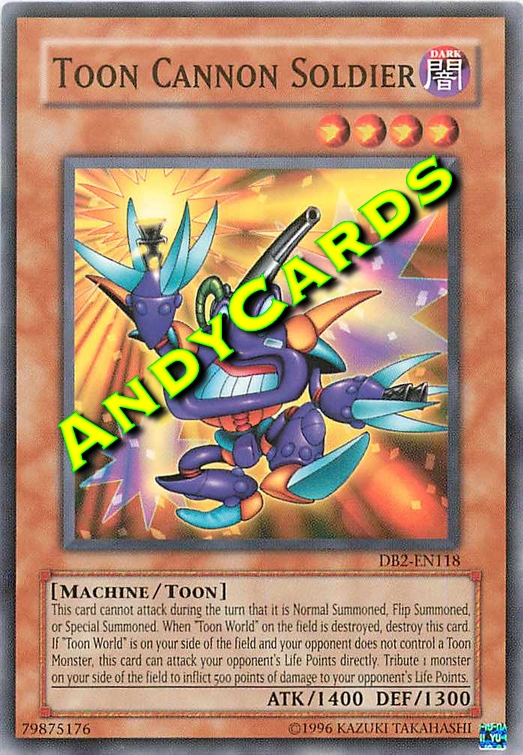 This card cannot attack during the turn that it is Normal Summoned, Flip Summoned, or Special Summoned. When "Toon World" on the field is destroyed, destroy this card. If "Toon World" is on your side of the field and your opponent does not control a Toon Monster, this card can attack your opponent's Life Points directly. Tribute 1 monster on your side of the field to inflict 500 points of damage to your opponent's Life Points.