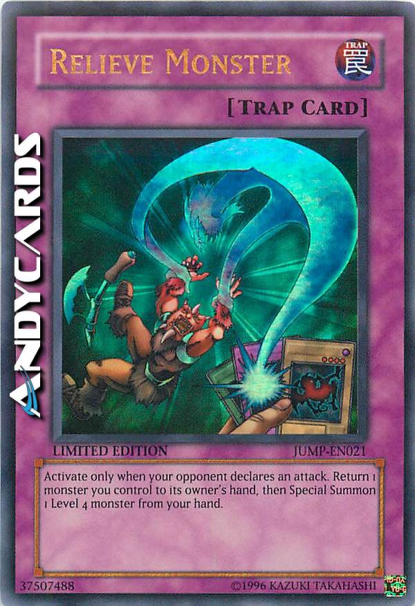 Attiva solo quando un mostro del tuo avversario dichiara un attacco. Scegli 1 mostro che controlli e fallo ritornare in mano. Poi Evoca Specialmente 1 mostro di Livello 4 dalla tua mano.
