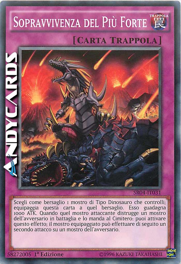 Scegli come bersaglio 1 mostro di Tipo Dinosauro che controlli; equipaggia questa carta a quel bersaglio. Esso guadagna 1000 ATK. Quando esso distrugge un mostro dell'avversario in battaglia e lo manda al Cimitero: il mostro equipaggiato può effettuare di seguito un secondo attacco su un mostro dell'avversario.