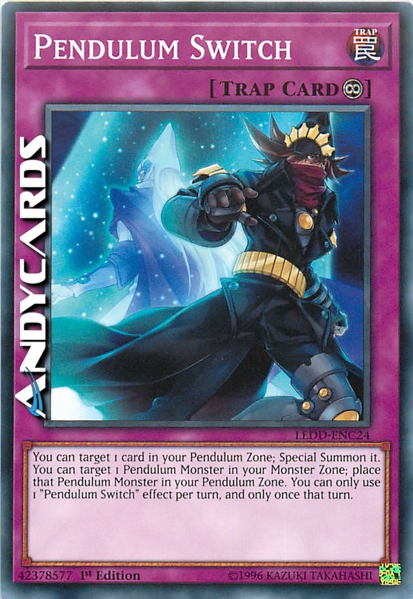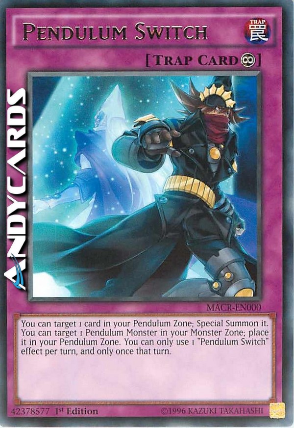 You can target 1 card in your Pendulum Zone; Special Summon it. You can target 1 Pendulum Monster in your Monster Zone; place that Pendulum Monster in your Pendulum Zone. You can only use 1 "Pendulum Switch" effect per turn, and only once that turn.