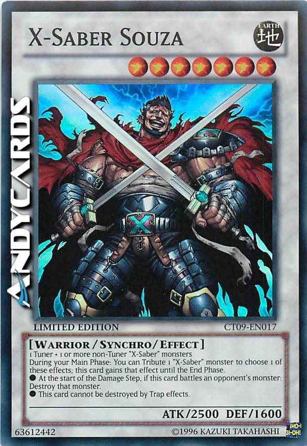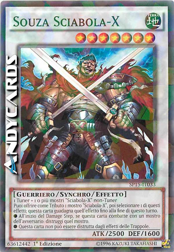 Durante la tua Main Phase: puoi offrire come Tributo 1 mostro "Sciabola-X" per selezionare 1 di questi effetti; questa carta guadagna quell'effetto fino alla End Phase.