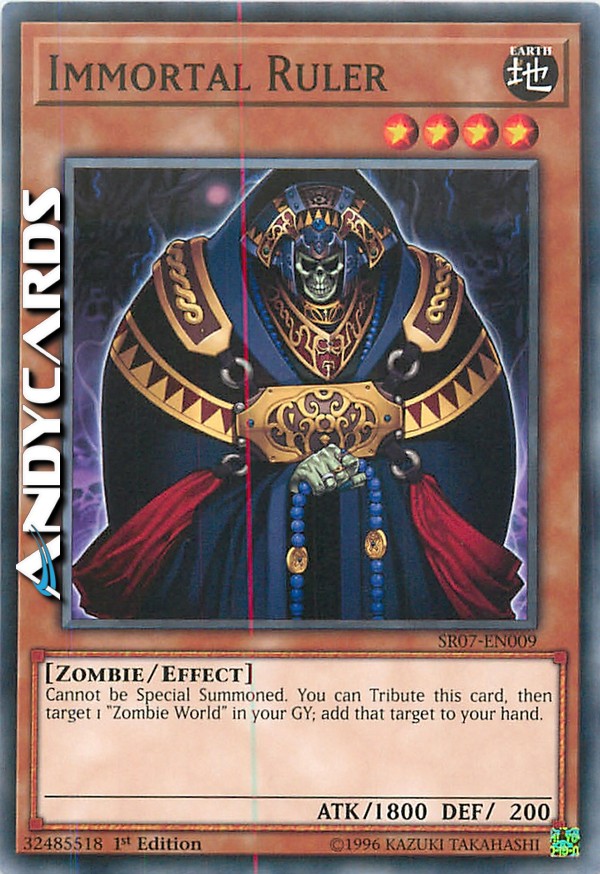 Non può essere Evocato Specialmente. Puoi offrire come Tributo questa carta, poi scegliere come bersaglio 1 "Mondo Zombie" nel tuo Cimitero; aggiungi quel bersaglio alla tua mano.
