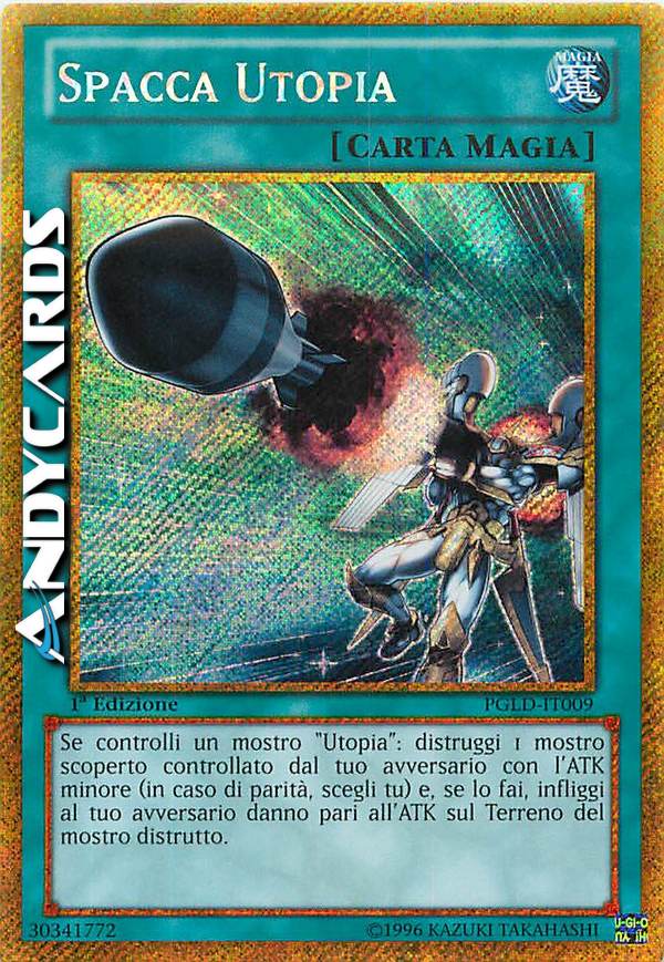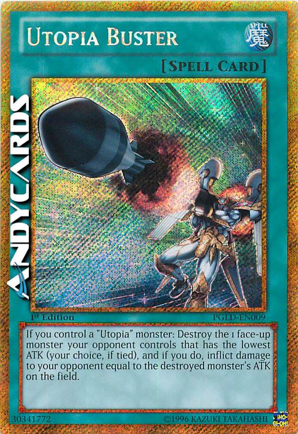 Se controlli un mostro "Utopia": distruggi 1 mostro scoperto controllato dal tuo avversario con l'ATK minore (in caso di parità, scegli tu) e, se lo fai, infliggi al tuo avversario danno pari all'ATK sul Terreno del mostro distrutto.