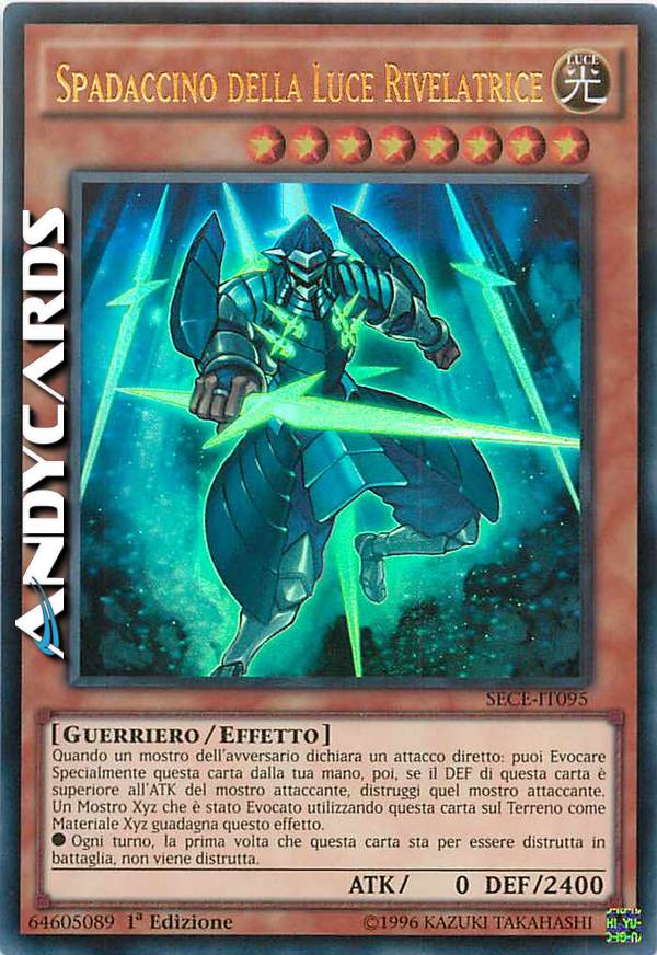 Quando un mostro dell'avversario dichiara un attacco diretto: puoi Evocare Specialmente questa carta dalla tua mano, poi, se il DEF di questa carta è superiore all'ATK del mostro attaccante, distruggi quel mostro attaccante. Un mostro Xyz che è stato Evocato usando questa carta sul terreno come Materiale Xyz guadagna questo effetto: • Ogni Turno, la prima volta che questa carta stà per essere distrutta in battaglia, non viene distrutta.