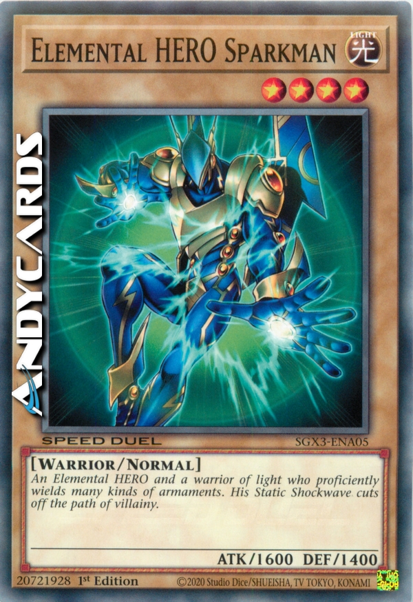 An Elemental HERO and a warrior of light who proficiently wields many kinds of armaments. His Static Shockwave cuts off the path of villainy.