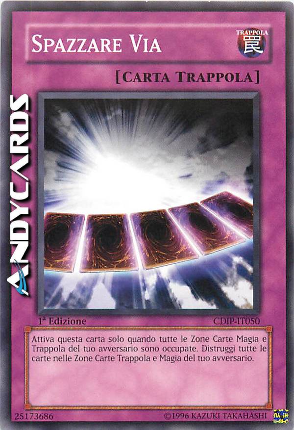 Attiva questa carta solo quando tutte le Zone Carte Magia e Trappola del tuo avversario sono occupate. Distruggi tutte le carte nelle Zone Carte Trappola e Magia del tuo avversario.