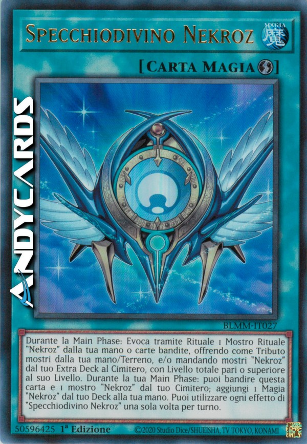 During the Main Phase: Ritual Summon 1 "Nekroz" Ritual Monster from your hand or banishment, by Tributing monsters from your hand/field, and/or sending "Nekroz" monsters from your Extra Deck to the GY, whose total Levels equal or exceed its Level. During your Main Phase: You can banish this card and 1 "Nekroz" monster from your GY; add 1 "Nekroz" Spell from your Deck to your hand. You can only use each effect of "Nekroz Divinemirror" once per turn.