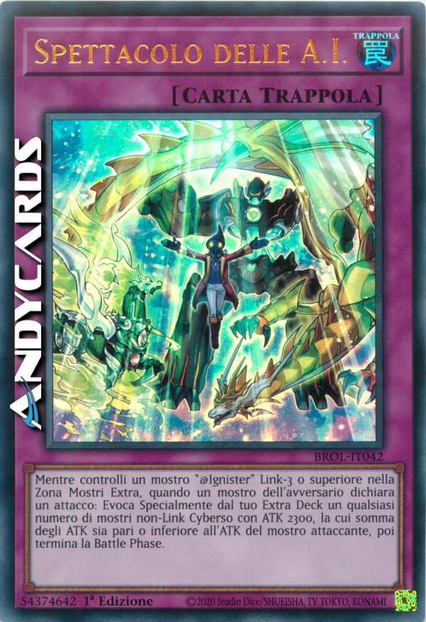 Mentre controlli un mostro "@Ignister" Link-3 o superiore nella Zona Mostri Extra, quando un mostro dell'avversario dichiara un attacco: Evoca Specialmente dal tuo Extra Deck un qualsiasi numero di mostri non-Link Cyberso con ATK 2300, la cui somma degli ATK sia pari o inferiore all'ATK del mostro attaccante, poi termina la Battle Phase.