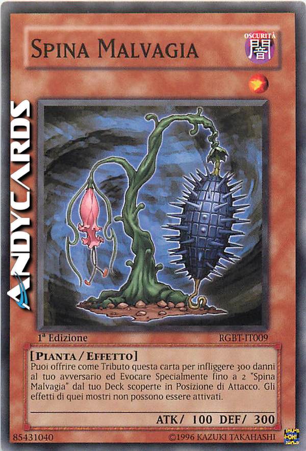 Puoi offrire come Tributo questa carta; infliggi 300 danni al tuo avversario e, se lo fai, puoi Evocare Specialmente fino a 2 "Spina Malvagia" dal tuo Deck in Posizione di Attacco, ma i loro effetti non possono essere attivati.