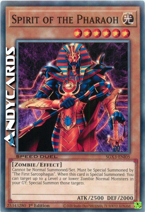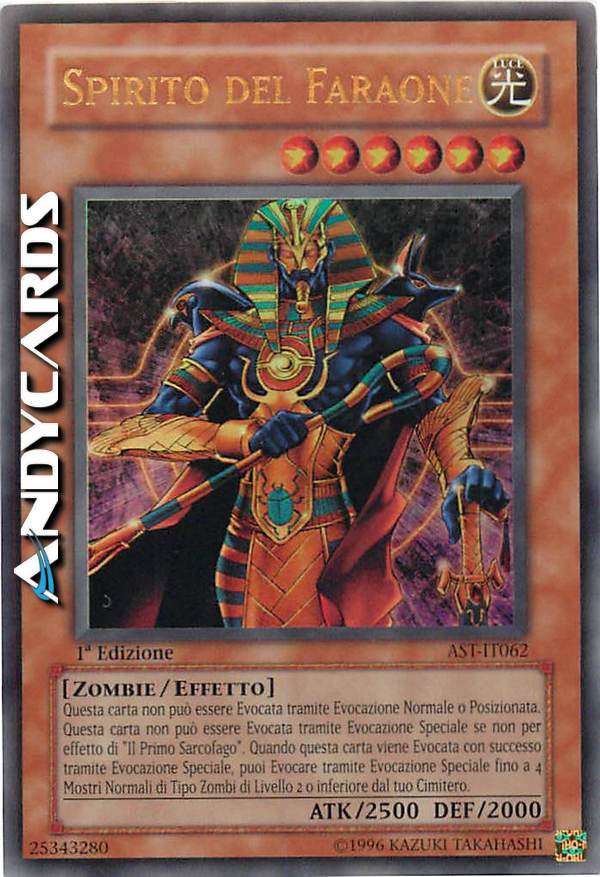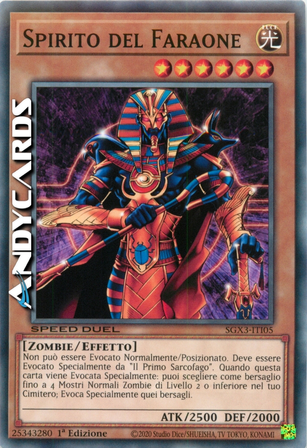 Questa carta non può essere Evocata tramite Evocazione Normale o Posizionata. Questa carta non può essere Evocata tramite Evocazione Speciale se non per effetto di "Il Primo Sarcofago". Quando questa carta viene Evocata con successo tramite Evocazione Speciale, puoi Evocare tramite Evocazione Speciale fino a 4 Mostri Normali di Tipo Zombi di Livello 2 o inferiore dal tuo Cimitero.