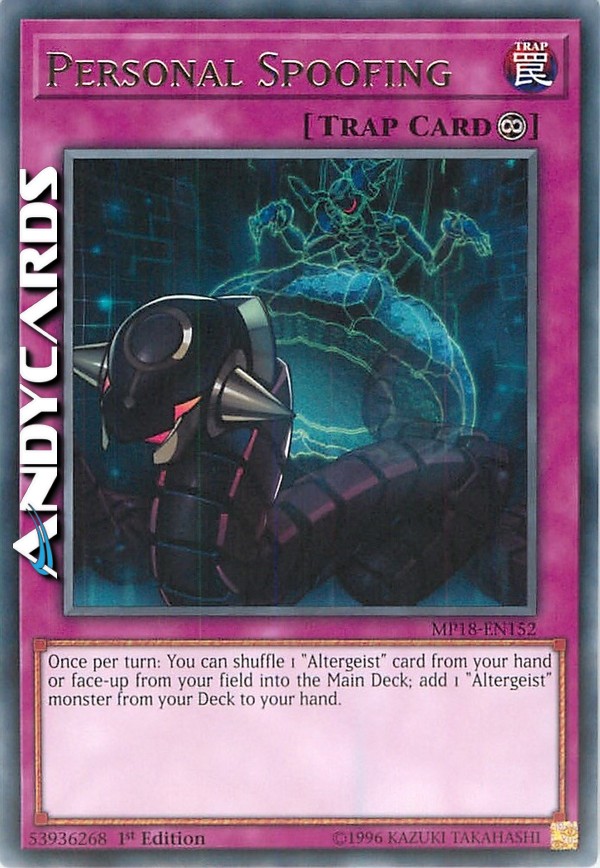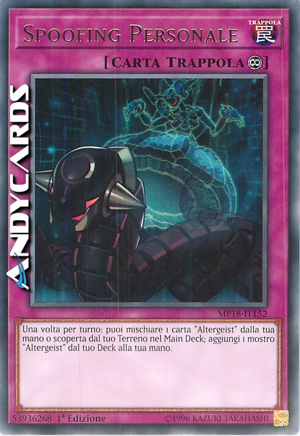Una volta per turno: puoi mischiare 1 carta "Altergeist" dalla tua mano o scoperta dal tuo Terreno nel Main Deck; aggiungi 1 mostro "Altergeist" dal tuo Deck alla tua mano.