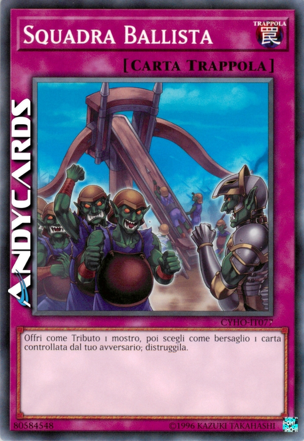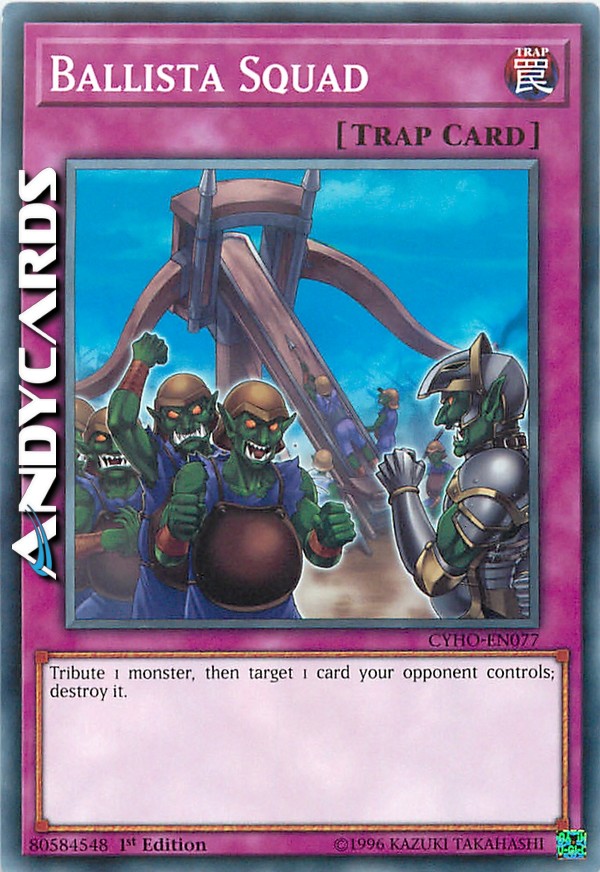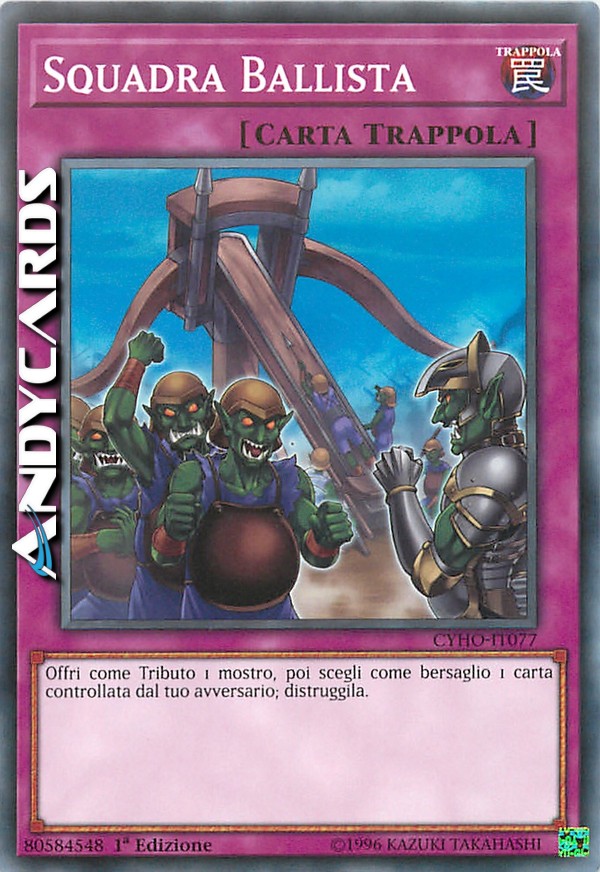 Offri come Tributo 1 mostro, poi scegli come bersaglio 1 carta controllata dal tuo avversario; distruggila.