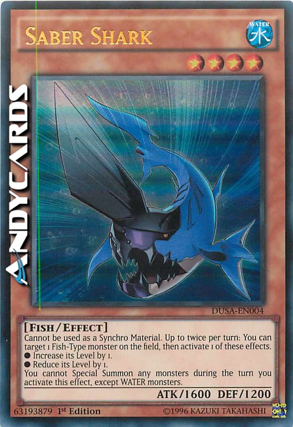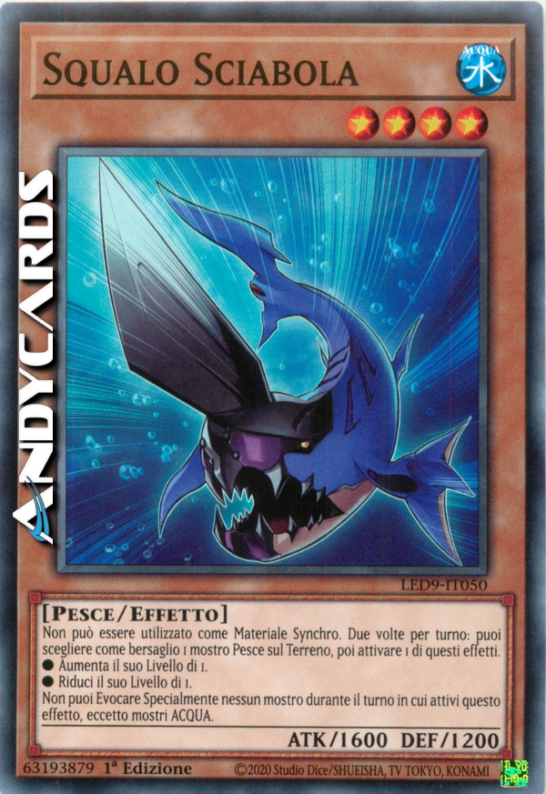 Non può essere utilizzato come Materiale Synchro. Fino a due volte per turno: puoi scegliere come bersaglio 1 mostro di Tipo Pesce sul Terreno, poi attivare 1 di questi effetti. - Aumenta il suo Livello di 1. - Diminuisci il suo Livello di 1. - Non puoi Evocare Specialmente nessun mostro durante il turno in cui attivi questo effetto, eccetto mostri ACQUA.