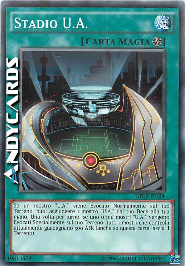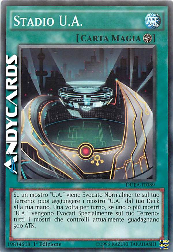 Se un mostro "U.A." viene Evocato Normalmente sul tuo Terreno: puoi aggiungere 1 mostro "U.A." dal tuo Deck alla tua mano. Una volta per turno, se uno o più mostri "U.A." vengono Evocati Specialmente sul tuo Terreno: tutti i mostri che controlli attualmente guadagnano 500 ATK.