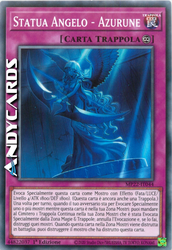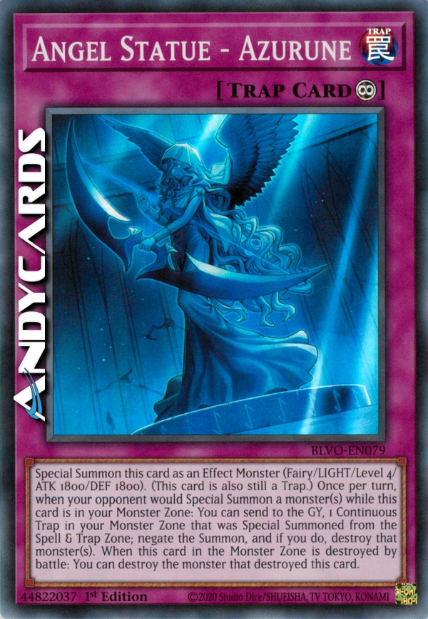 Evoca Specialmente questa carta come Mostro con Effetto (Fata/LUCE/Livello 4/ATK 1800/DEF 1800). (Questa carta è ancora anche una Trappola.) Una volta per turno, quando il tuo avversario sta per Evocare Specialmente uno o più mostri mentre questa carta è nella tua Zona Mostri: puoi mandare al Cimitero 1 Trappola Continua nella tua Zona Mostri che è stata Evocata Specialmente dalla Zona Magie & Trappole; annulla l'Evocazione e, se lo fai, distruggi quei mostri. Quando questa carta nella Zona Mostri viene distrutta in battaglia: puoi distruggere il mostro che ha distrutto questa carta.