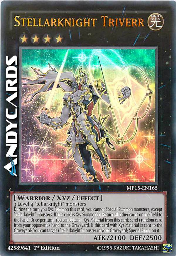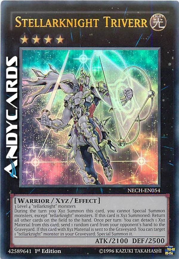 During the turn you Xyz Summon this card, you cannot Special Summon monsters, except "tellarknight" monsters. If this card is Xyz Summoned: Return all other cards on the field to the hand. Once per turn: You can detach 1 Xyz Material from this card; send 1 random card from your opponent's hand to the Graveyard. If this card with Xyz Material is sent to the Graveyard: You can target 1 "tellarknight" monster in your Graveyard; Special Summon it.