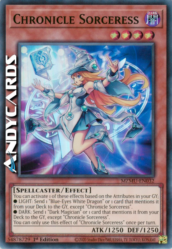 ●LIGHT: Send 1 "Blue-Eyes White Dragon" or 1 card that mentions it from your Deck to the GY, except "Chronicle Sorceress".