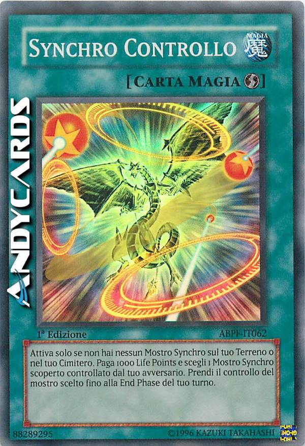 Attiva solo se non hai nessun Mostro Synchro sul tuo Terreno o nel tuo Cimitero. Paga 1000 Life Points e scegli 1 Mostro Synchro scoperto controllato dal tuo avversario. Prendi il controllo del mostro scelto fino alla End Phase del tuo turno.