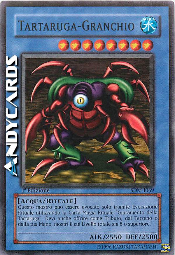 Questo Mostro può essere evocato solo tramite Evocazione Rituale utilizzando la Carta Magia Rituale "Giuramento della Tartaruga". Devi anche offrire come Tributo, dal Terreno o dalla tua Mano, Mostri il cui Livello totale sia 8 o superiore.