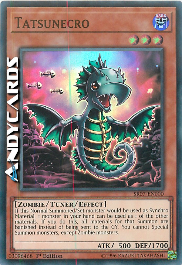 Se questo mostro Evocato Normalmente/Posizionato sta per essere utilizzato come Materiale Synchro, 1 mostro nella tua mano può essere utilizzato come 1 degli altri materiali. Se fai questo, tutti i materiali per quella Evocazione vengono banditi invece di essere mandati al Cimitero. Non puoi Evocare Specialmente mostri, eccetto mostri Zombie.