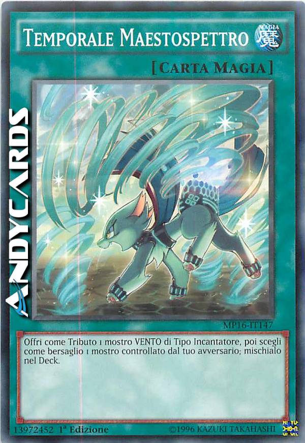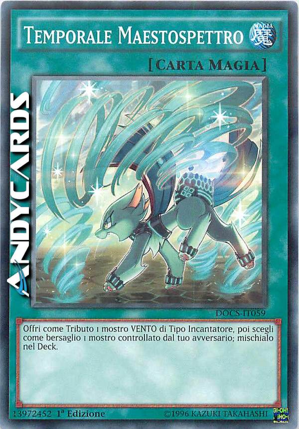 Offri come Tributo 1 mostro VENTO di Tipo Incantatore, poi scegli come bersaglio 1 mostro controllato dal tuo avversario; mischialo nel Deck.