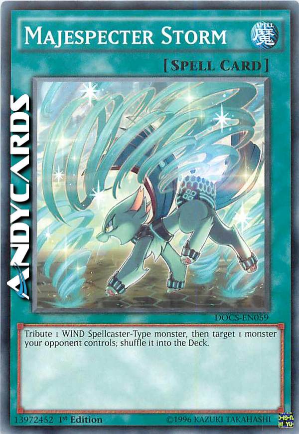 Tribute 1 WIND Spellcaster-Type monster, then target 1 monster your opponent controls; shuffle it into the Deck.