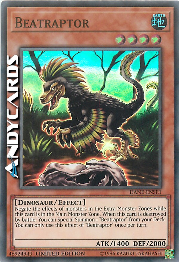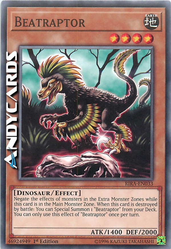 Negate the effects of monsters in the Extra Monster Zones while this card is in the Main Monster Zone. When this card is destroyed by battle: You can Special Summon 1 "Beatraptor" from your Deck. You can only use this effect of "Beatraptor" once per turn.