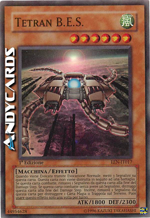 Quando questa carta viene evocata tramite Evocazione Normale metti 3 segnalini su questa carta .Questa carta non viene distrutta in seguito ad una battaglia. Se questa carta combatte, rimuovi 1 segnalino da questa carta alla fine del Damage Step.Se questa carta combatte senza avere 1 segnalino, distruggi questa carta alla fine del Damage Step.Inoltre rimuovi 1 segnalino da questa carta per ditruggere 1 carta Magia o Trappolasul Terreno.Puoi usare questo effetto solo una volta per turno.