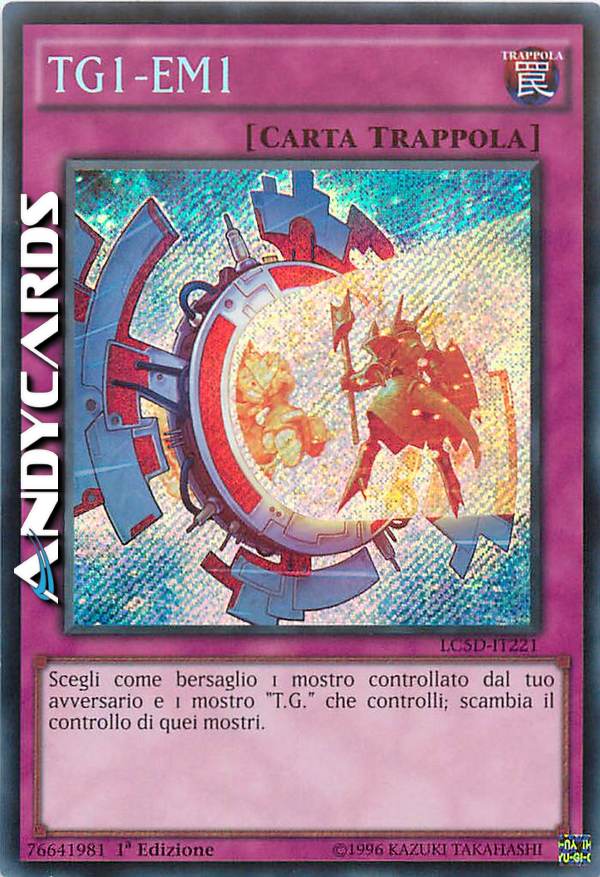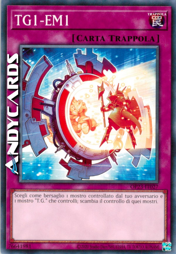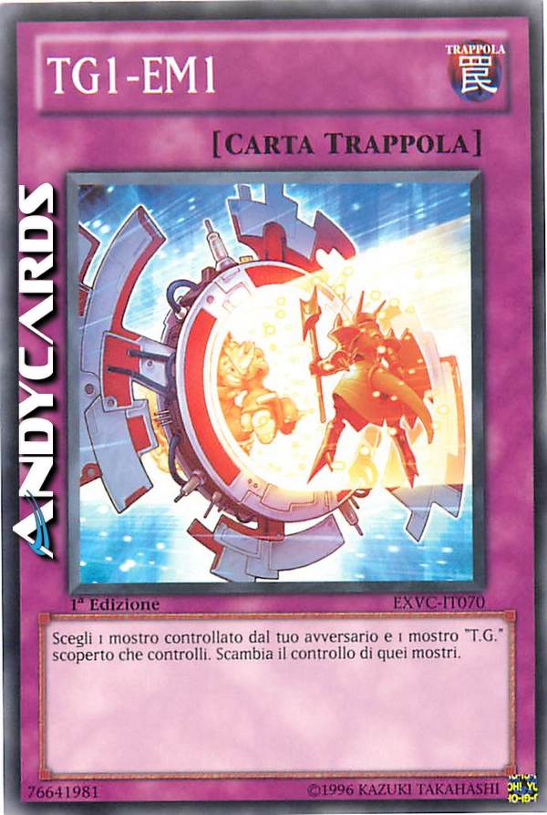 Scegli come bersaglio 1 mostro controllato dal tuo avversario e 1 mostro "T.G." che controlli; scambia il controllo di quei mostri.