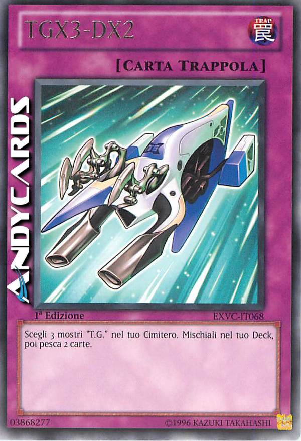 Scegli 3 mostri "T.G." nel tuo Cimitero. Mischiali nel tuo Deck, poi pesca 2 carte.