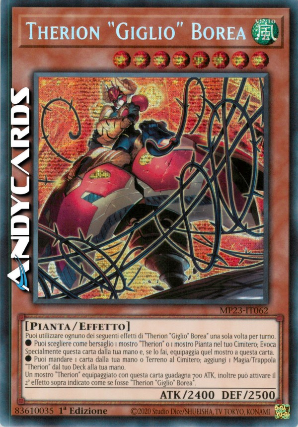 Un mostro "Therion" equipaggiato con questa carta guadagna 700 ATK, inoltre può attivare il 2º effetto sopra indicato come se fosse "Therion "Giglio" Borea".