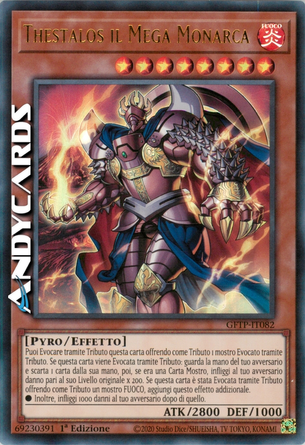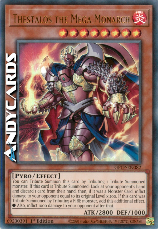 Puoi evocare tramite Tributo questa carta offrendo come Tributo 1 mostro Evocato tramite tributo. Qundo questa carta viene Evocata tramite Tributo: guarda la mano del tuo avversario e scarta 1 carta dalla sua mano, poi se era una Carta Mostro, infliggi al tuo avversario danno pari al suo Livello originale x 200. Se questa carta è stata evocata tramite Tributo offrendo come tributo un mostro fuoco, aggiungi questo effetto addizionale.