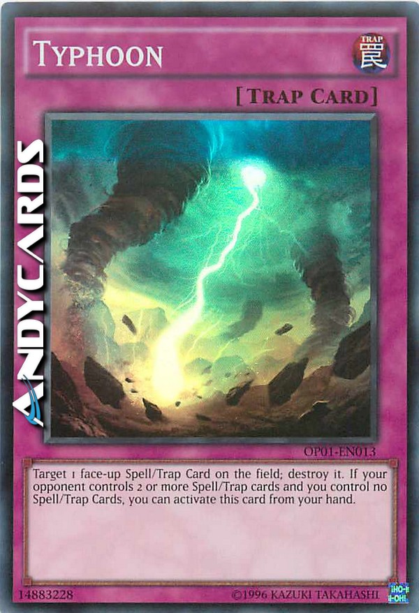 Scegli come bersaglio 1 Carta Magia/Trappola scoperta sul Terreno; distruggila. Se il tuo avversario controlla 2 o più Carte Magia/Trappola e tu non controlli nessuna carta Magia/Trappola, puoi attivare questa carta dalla tua mano.