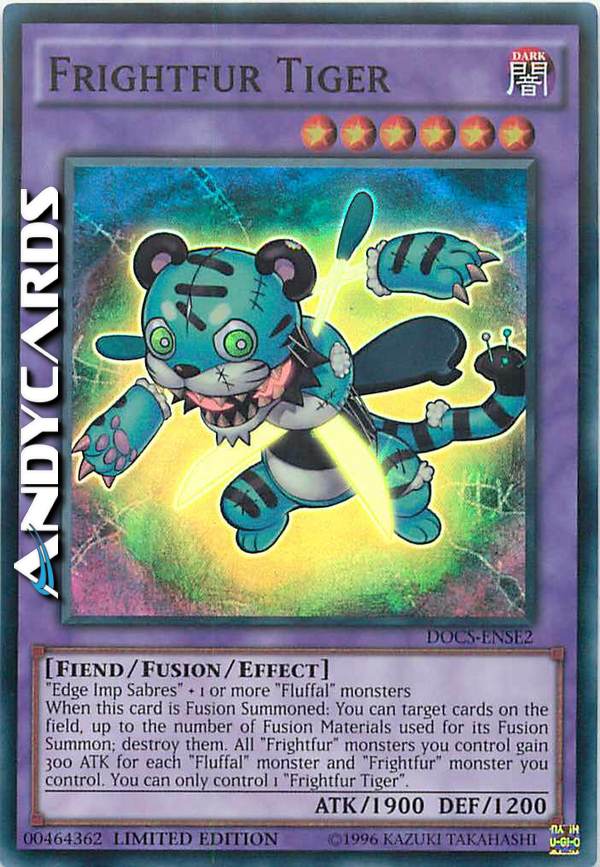 Edge Imp Sabres + 1 or more "Fluffal" monsters - When this card is Fusion Summoned: You can target cards on the field, up to the number of Fusion Materials used for its Fusion Summon; destroy them. All "Frightfur" monsters you control gain 300 ATK for each "Fluffal" monster and "Frightfur" monster you control. You can only control 1 "Frightfur Tiger".
