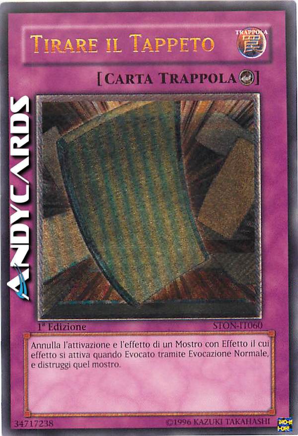 Annulla l'attivazione e l'effetto di un Mostro con Effetto il cui effetto si attiva quando Evocato tramite Evocazione Normale e distruggi quel mostro. NUOVO TESTO: Annulla l'attivazione e l'effetto di un Mostro con Effetto il cui effetto si attiva quando un mostro è Evocato tramite Evocazione Normale e distruggi quel mostro.