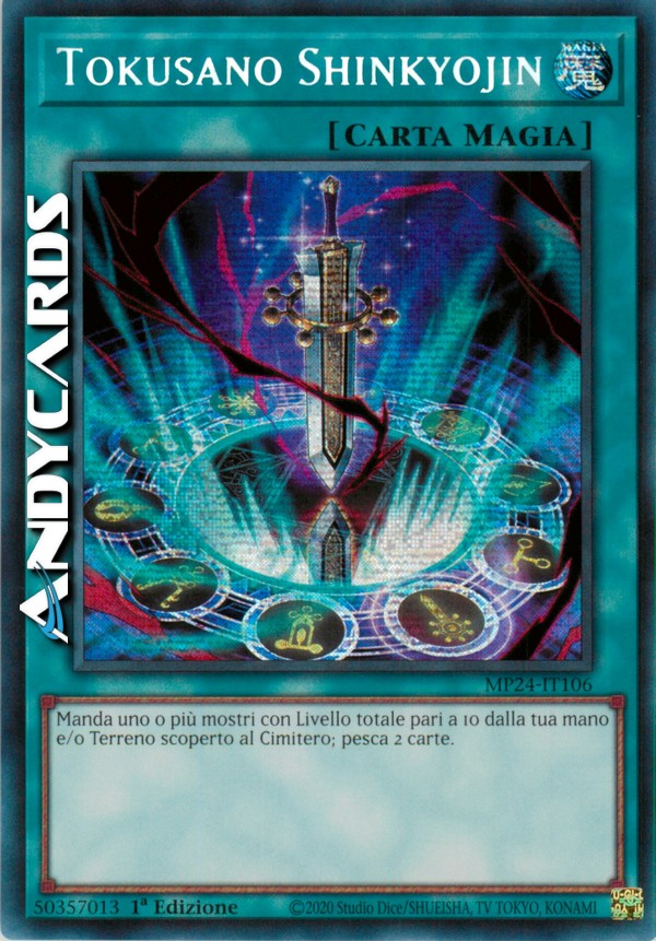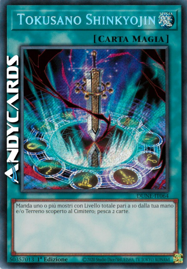 Manda uno o più mostri con Livello totale pari a 10 dalla tua mano e/o Terreno scoperto al Cimitero; pesca 2 carte.