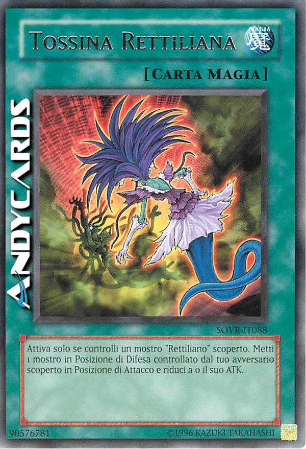 Attiva solo se controlli un mostro "Rettiliano" scoperto. Metti 1 mostro in Posizione di Difesa controllato dal tuo avversario scoperto in Posizione di Attacco e riduci a 0 il suo ATK.