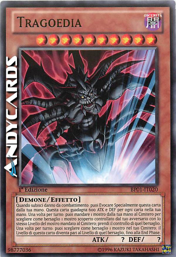 Quando subisci danno da combattimento: puoi Evocare Specialmente questa carta dalla tua mano. Guadagna 600 ATK/DEF per ogni carta nella tua mano. Una volta per turno: puoi mandare 1 mostro dalla tua mano al Cimitero, poi scegliere come bersaglio 1 mostro scoperto controllato dal tuo avversario con lo stesso Livello che il mostro mandato aveva nella mano; prendi il controllo di quel mostro scoperto. Una volta per turno: puoi scegliere come bersaglio 1 mostro nel tuo Cimitero; il Livello di questa carta diventa lo stesso di quel bersaglio, fino alla fine di questo turno.