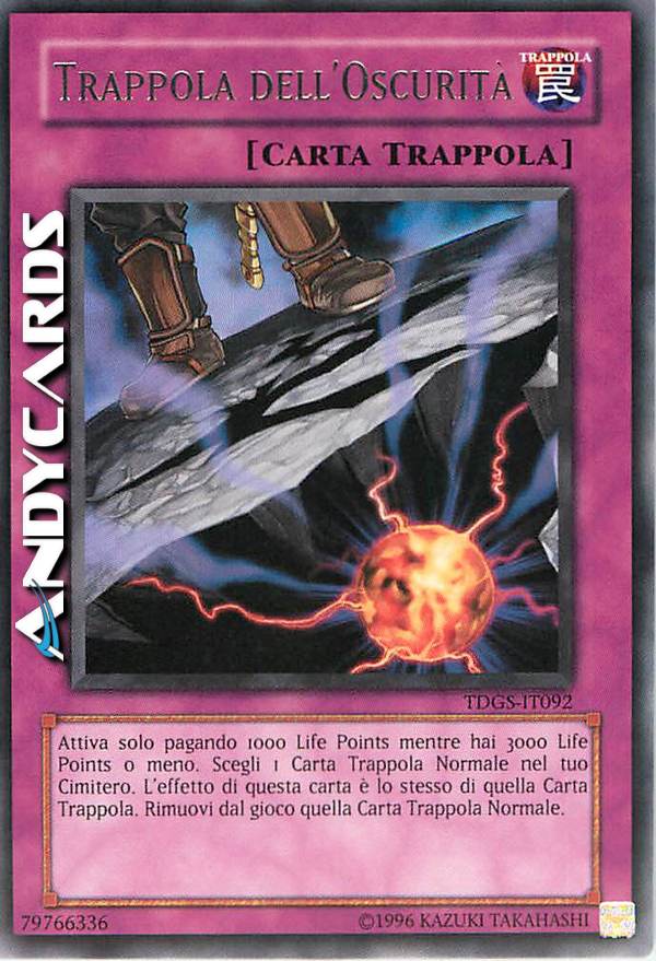 Attiva solo pagando 1000 Life Points mentre hai 3000 Life Points o meno. Scegli 1 Carta Trappola Normale nel tuo Cimitero. L'effetto di questa carta è lo stesso di quella Carta Trappola. Rimuovi dal gioco quella Carta Trappola Normale.