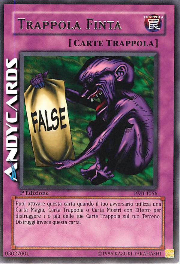 Puoi attivare questa carta quando il tuo avversario utilizza una carta Magia, carta Trappola o carta Mostro con Effetto per distruggere 1 o più delle tue carte Trappola sul tuo Terreno. Distruggi invece questa carta.