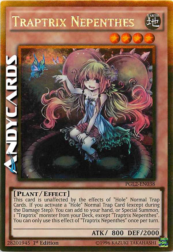 Unaffected by the effects of "Hole" Normal Traps. If you activate a "Hole" Normal Trap Card (except during the Damage Step): You can add to your hand, or Special Summon, 1 "Traptrix" monster from your Deck, except "Traptrix Nepenthes". You can only use this effect of "Traptrix Nepenthes" once per turn.